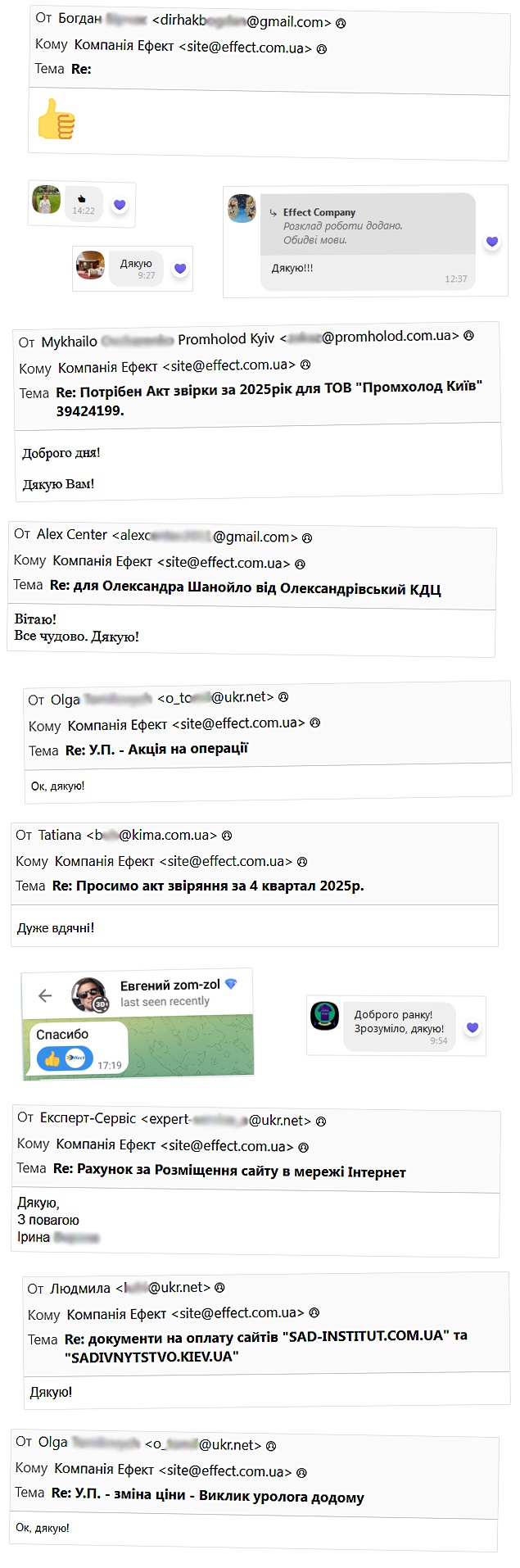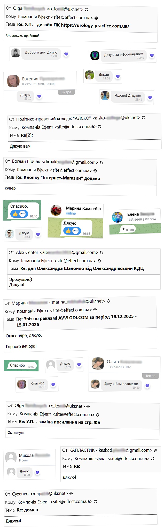 Однак, ми вирішили опублікувати ті подяки і відгуки Клієнтів, які ми змогли зібрати впродовж місяця, без значної уваги до цього питання.